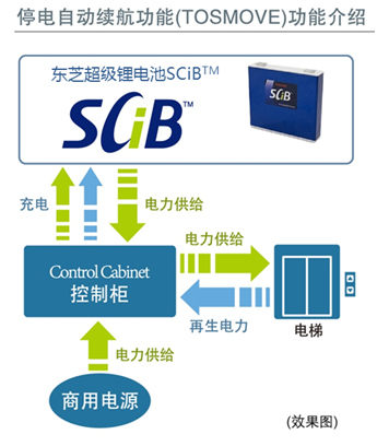 作為ELCOSMO-III型乘客電梯的專屬附加功能,“TOSMOVE”在發(fā)生停電之后將迅速切換至電池模式,以低速運行至最近樓層,并可在隨后保持0.5米/秒的速度續(xù)航長達30分鐘。在續(xù)航過程中,電梯轎廂內的照明和換氣裝置可正常工作,為乘客提供便利。“TOSMOVE”系統(tǒng)模塊搭載東芝超級鋰電池SCiBTM,采用氯化物新型材料,較一般鋰電池具有更長的使用壽命和更好的低溫特性。即使發(fā)生內部短路,緩慢電流也能有效抑制發(fā)熱,確保使用安全性。